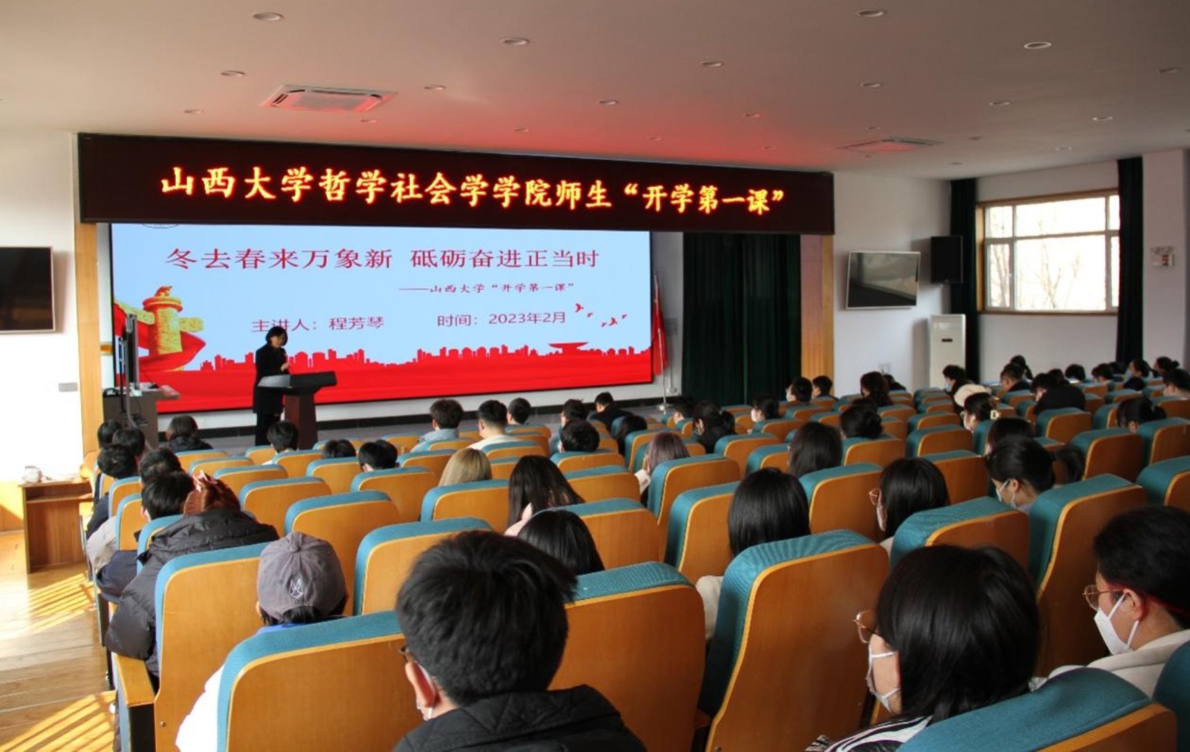程芳琴以“冬去春来万象新 砥砺奋进正当时”为主题,结合自身经历和体会,系统地为师生传达了党的二十大精神,同大家回顾抗疫成就,立足当下形势,展望美好未来,共同开启tyc1286太阳成集团新学期的崭新篇章。程芳琴鼓励同学们在新学期要认真学习,努力掌握专业知识,提升专业本领;要广泛实践,不断丰富校园生活,实现全面发展;要克己慎独,养成良好生活习惯,守护个人健康。