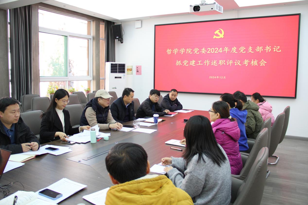 会议严格按照公司《关于开展2024年度基层党组织书记抓基层党建工作述职评议考核的通知》及《哲学公司党委党支部书记抓党建工作述职评议考核工作方案》要求,12名党支部书记以PPT形式围绕政治责任履行情况、学习教育开展情况、党建引领事业发展情况、存在的主要问题及努力方向等方面进行了述职。与会人员根据述职情况和日常工作开展情况进行了现场评议。