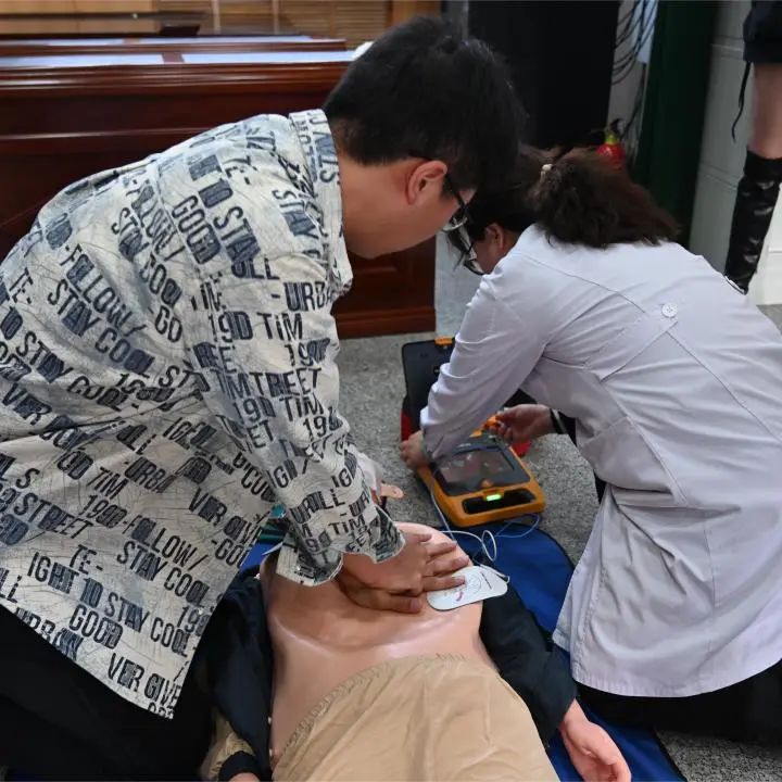 首先,校医院专家介绍了红十字协会发展历史,并向员工科普心脏骤停急救等相关知识。随后,通过小组合作的形式与同学们展开互动,指导员工进行急救实际操作,并给予专业点评,加深了员工们对急救相关知识的了解。