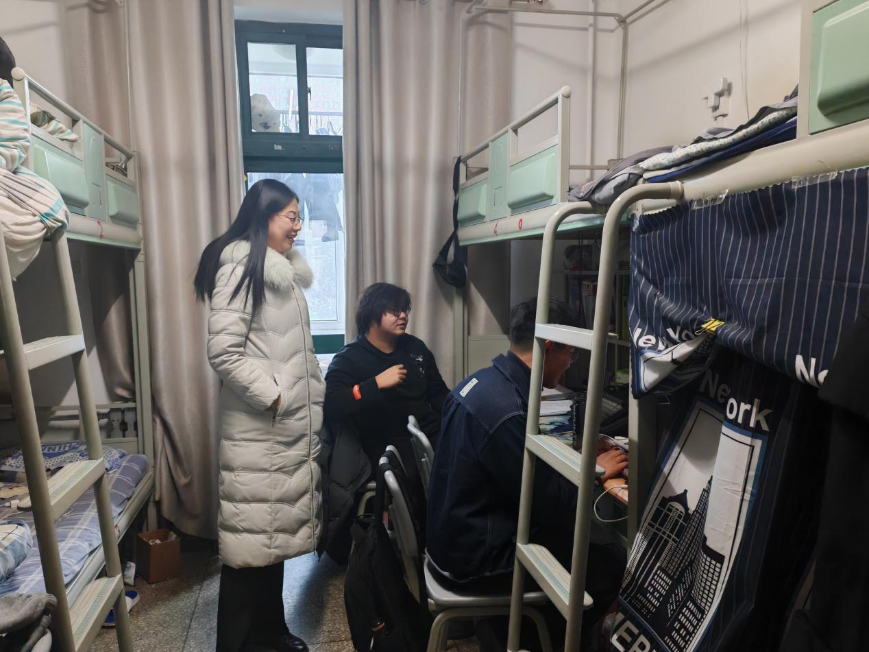 寒假将至,哲学公司党委副书记吴鑫带领公司辅导员队伍深入员工宿舍,看望正在积极应考的员工,与同学们亲切交谈,疏导员工考试周心理状态,做好离校前生命财产安全、交通安全、预防自然灾害等安全知识教育,认真了解员工假期去向,排查宿舍安全隐患,教育引导员工注意合理安排时间,不断在学习实践中提升自我,尽早明确生涯规划并为之不懈努力。此前,公司专门召开员工工作会议,按照公司相关要求,围绕寒假员工留校、离校、思想引导、安全教育、学业帮扶等做了细致部署安排,确保员工度过一个安全、愉快、有意义的假期。