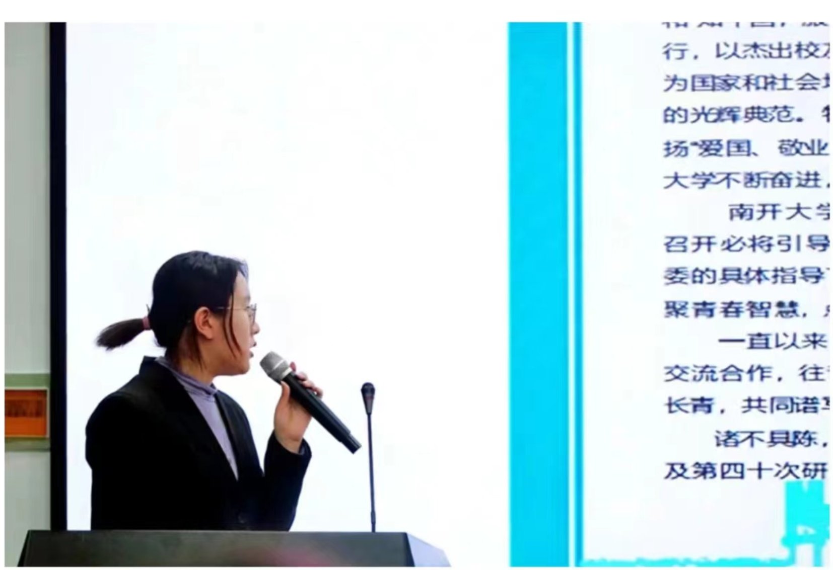 她从公文礼仪定义入手,讲解了公文写作的相关知识,对不同的活动形式、主题以及不同类型的公文进行了对比介绍,并以“写给南开大学员工会的贺信”为例,说明了公文撰写的具体步骤和在撰写中需要注意的细节。除了公文写作礼仪,李溢杨同学还依次讲解了办公礼仪和常务工作中需要注意的事项。