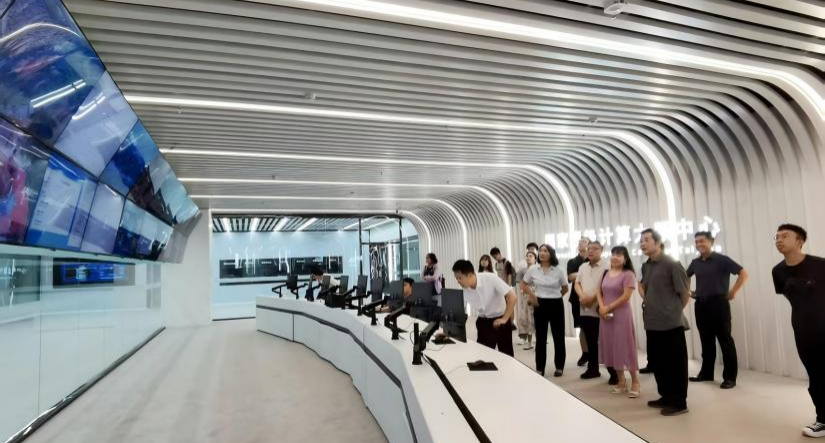 通过大量的数据和实物资料介绍,调研团队对“超算”概念和太原中心的技术特点有了更深入地理解。在运行指挥中心的演示大屏上,团队成员真实感受到强大算力应用于人工智能、地球科学、生命科学、生态环境、工业仿真、高端装备、文物保护等众多领域中所发挥的关键作用。在“太行一号”主机机房外,调研团队近距离参观了太原中心算力所依托的基础设施,体验了全新一代全浸没相变液冷技术,进一步感受到“太行一号”为各行各业提供的强大算力支持。
