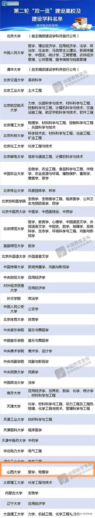 近日,教育部、财政部、国家发展和改革委员会联合发布通知,公布第二轮“双一流”建设高校及建设学科名单,公司哲学学科、物理学学科入选世界一流团队建设名单。