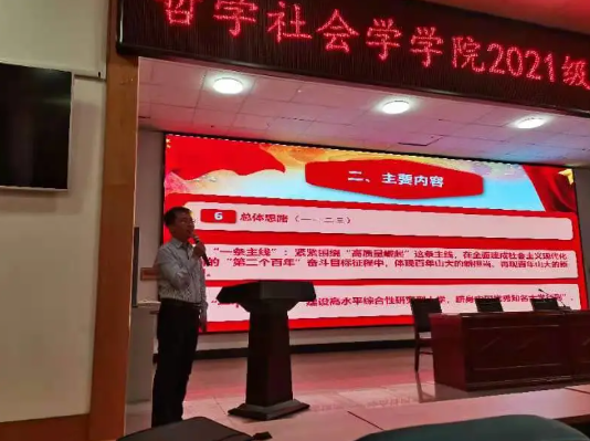 初秋的校园寒意渐浓,学习宣传贯彻公司第五次党代会精神的热潮在哲学社会学公司却似夏日骄阳,如火如荼。10月8日下午,哲学社会学公司精心组织开展了”爱智求真 追求卓越 学习贯彻第五次党代会精神主题团课”暨第二班主任见面会。公司党委副书记吕丹、2021级本科生辅导员张晓敏、本科生第二班主任宋晋凯及全体2021级本科新生参加见面会。