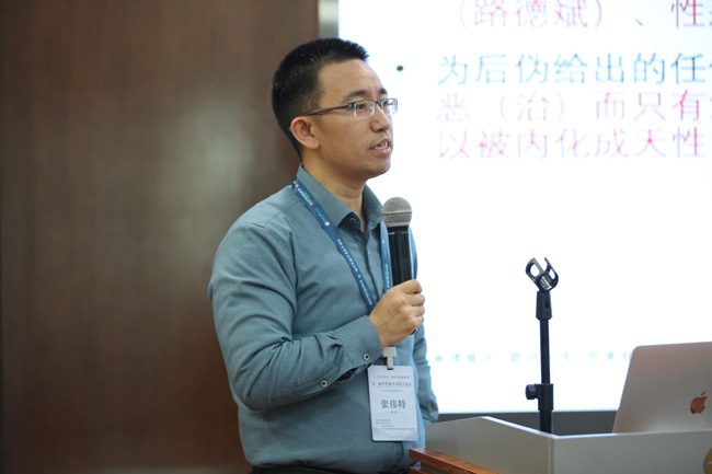 张伟特教授的报告为“荀子哲学系统的元哲学分析:中国哲学转型的元现代化路径”。张伟特教授表示,如何评价一个哲学理论的质量是一个元哲学难题,也是所有哲学传统发展面临的考验,自然也是中国哲学现代化转型需要克服的挑战。在借鉴相关理论的基础上,他提出了一个针对哲学理论的元哲学评价理论,并以荀子的哲学进行案例分析,验证其理论效力。最后,他又对中国哲学的现代化转型应该采取何种标准这一根本问题进行了尝试回答。